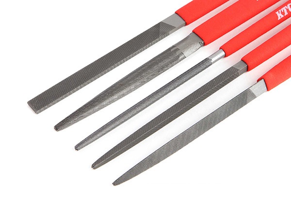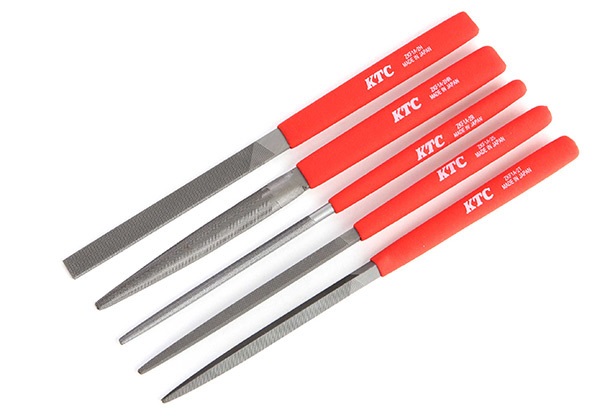 Bộ dũa KTC TZKF1A05 với 5 loại dũa hình dáng khác nhau với cán bọc nhựa (màu đỏ cam) |