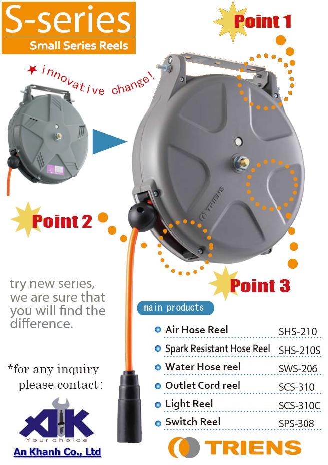 Đối với sản phẩm cuộn dây tự rút mà thường gặp nhất là cuộn dây hơi tự rút (cuộn dây khí nén tự rút), cuộn dây điện tự rút, hay cuộn dây nước tự rút .. .. .chất lượng cao có xuất xứ từ Nhật được nhiều khách hàng biết đến đó là thương hiệu Triens của Sankyo Nhật bản.