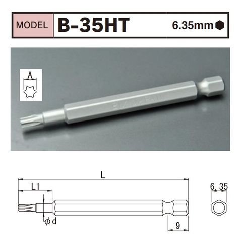 Thông số, hình ảnh mũi bit (mũi vặn vít) đầu hoa thị (hình sao) B-35HT: