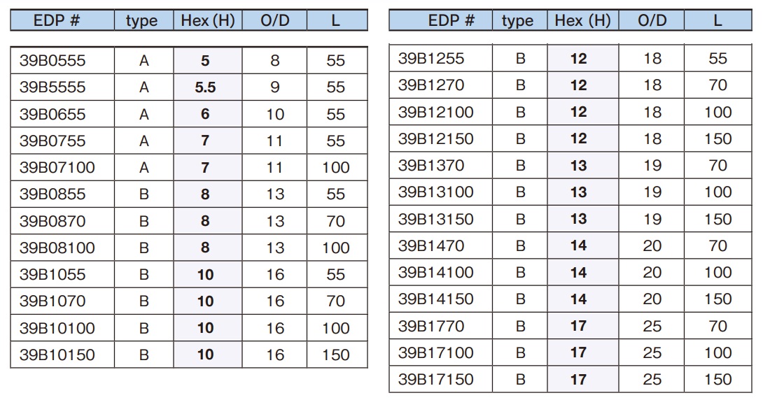 | Đầu bits vặn ốc lục giác BiX B-39B có các cỡ từ 5 đến 17mm (với 2 loại type A, type B). | |