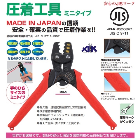 | Kìm bóp cos Marvel dùng cho các công việc liên quan đến các đầu cos từ 1.25, 2.0, 3.5 và 5.5mm2 Sản phẩm được nhập khẩu từ Marvel Nhật bản, Với các cỡ lớn hơn, tham khảo MH-14JIS hoặc MH-14DIN |
