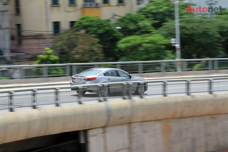 Khả năng phản ứng chân ga nhanh nhạy, hộp số tự động 6 cấp chuyển số mượt mà, thế nhưng chiếc xe có vẻ hơi vất vả để kéo theo trọng lượng gần 1,4 tấn ở giai đoạn vòng tua thấp. Khả năng ôm cua của xe được chúng tôi đánh giá cao bởi thân xe cung cấp độ cân bằng tốt. Tất nhiên, với động cơ có công suất không quá lớn, điều mà bạn mong đợi ở Mazda6 sẽ không thể là tốc độ mà chủ yếu nằm ở sự êm ái và thoải mái khi vận hành.
